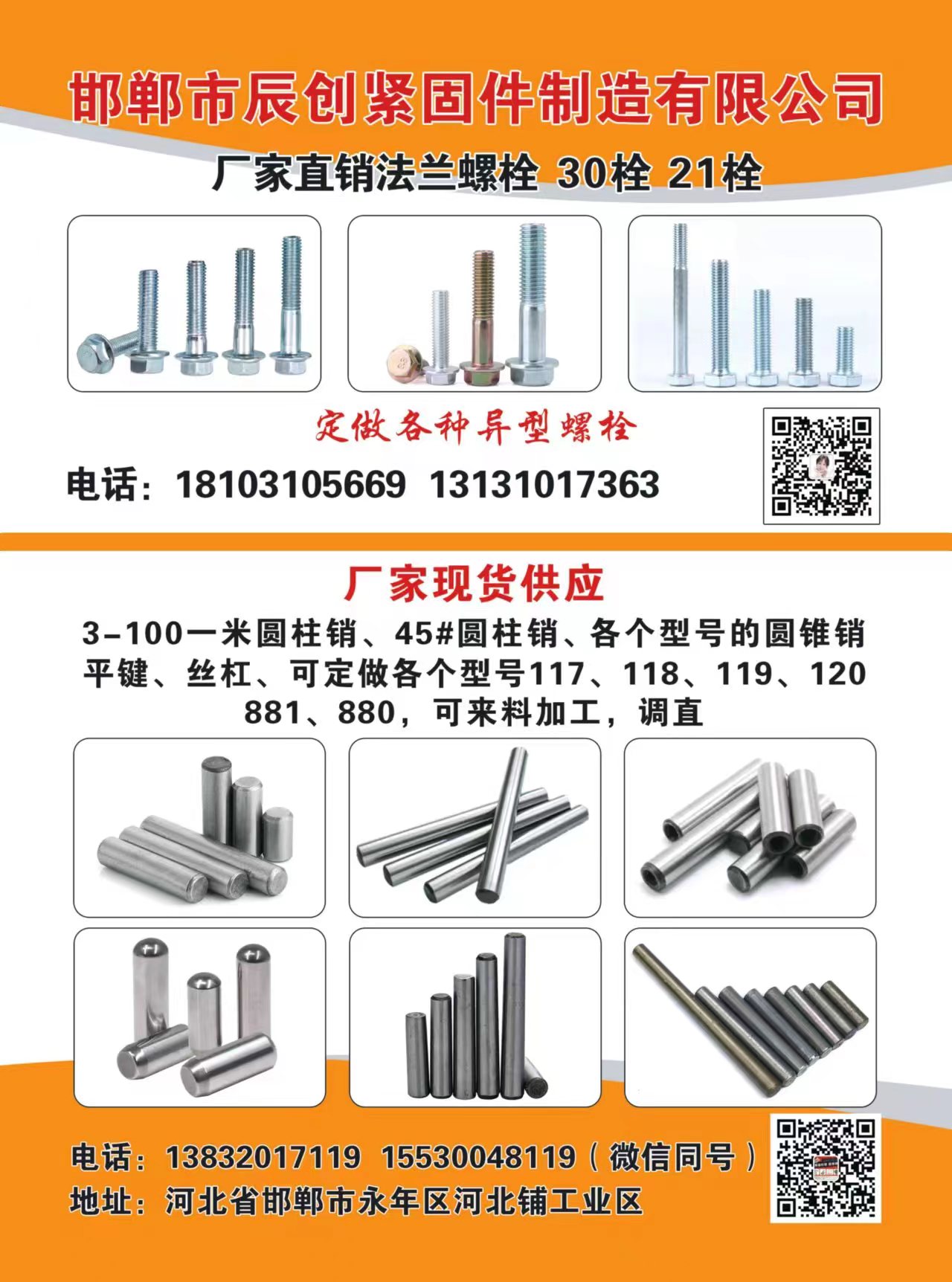 厂家直销法兰螺栓、30栓、21栓,定做各种异型螺栓;现货供应3-100一米圆柱销、45#圆柱销、各个型号的圆锥销、平键、丝杠、可定做各个型号117、118、119、120、881、880,可来料加工,调直