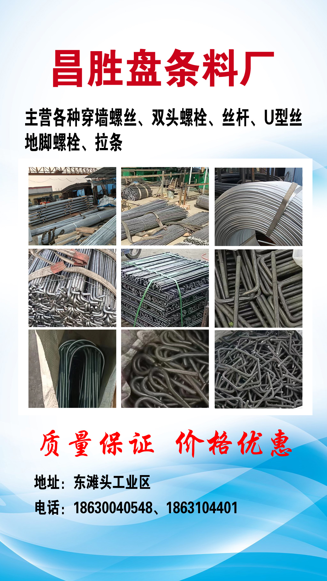 主营 各种穿墙螺丝、双头螺栓、丝杆、U型丝、地脚螺栓、拉条