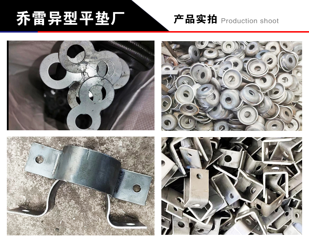 公司主营方垫、圆垫、地脚底板、大理石挂件、剪割3-30厚铁板、预埋件、冲压各种异型平垫、对外冲孔(20-100)、订做各种异型件异型垫。